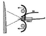 在紙張或金屬加工處理過程中,被測體通常會有蒸汽不斷蒸發(fā)。一般的紅外測溫儀因其蒸汽而使鏡頭凝結(jié)水霧影響測量精度,同時,水蒸氣被波長范圍與實際的被測體的波長有區(qū)別,針對這種情況,浦匯光電的產(chǎn)品提供了一個氣體吹掃裝置,它能將傳感器測量區(qū)域內(nèi)的蒸汽吹去,如下圖所示,從而能夠精確測量被測體的表面溫度。